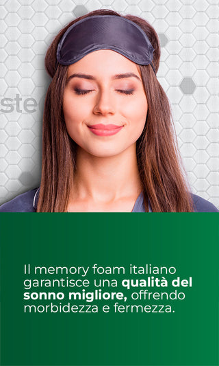 La schiuma viscoelastica distribuisce in maniera ideale la pressione e garantisce adattabilità millimetrica a testa e collo.